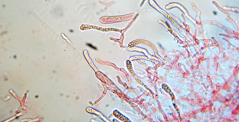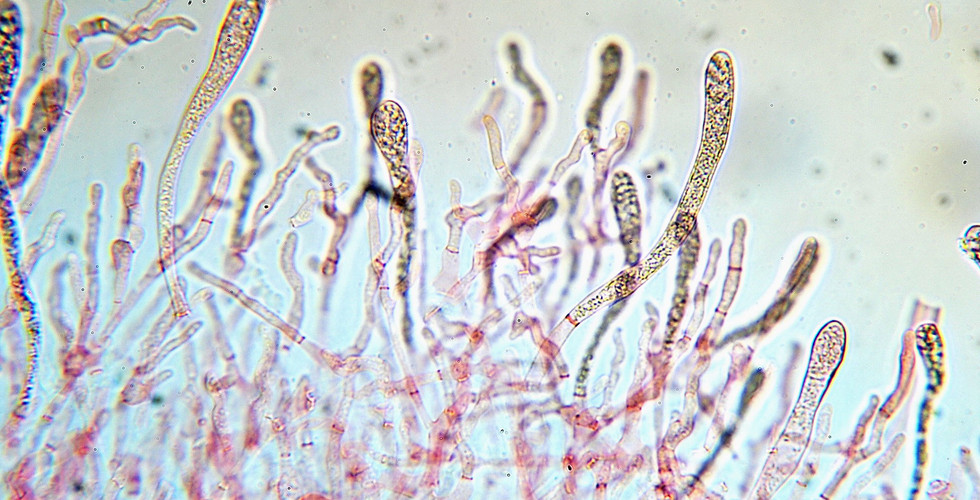 Forme stérile de Hypholoma fascularis (Fr. ex Huds). Les lames restent jaunes, et les basides sont stériles (ne portent pas de spores).