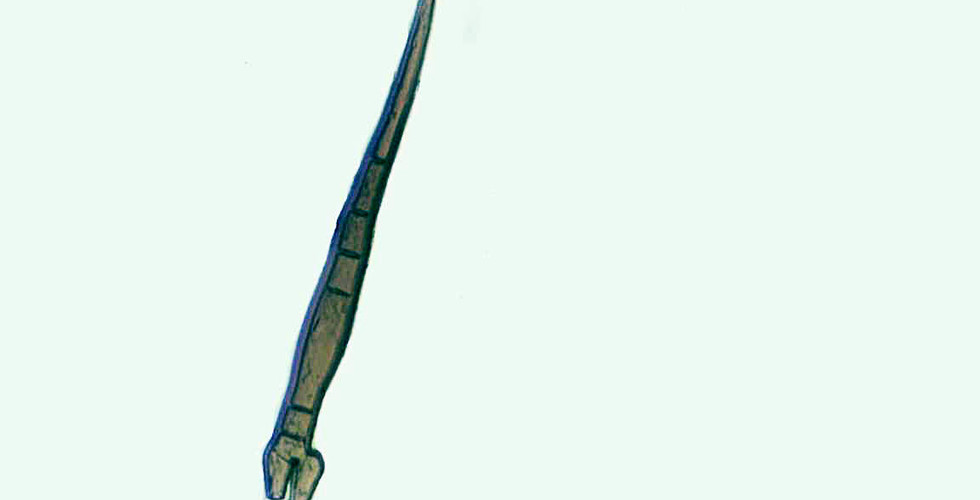 Les poils septés entre 300 à 530 µm ont le plus souvent une base simple , parfois double et rarement triple.